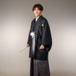深緑の落ち着いた色味に映える大柄の白地ベースのお花柄。同色の帯でスッキリ洗練されたお洒落コーデ(*´ω`*)