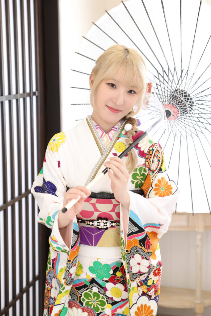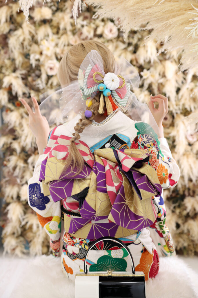 本日は白地にカラフルなお花がたくさん入ってる華やかなお振袖を着こなしてくださったお嬢様をご紹介します✨