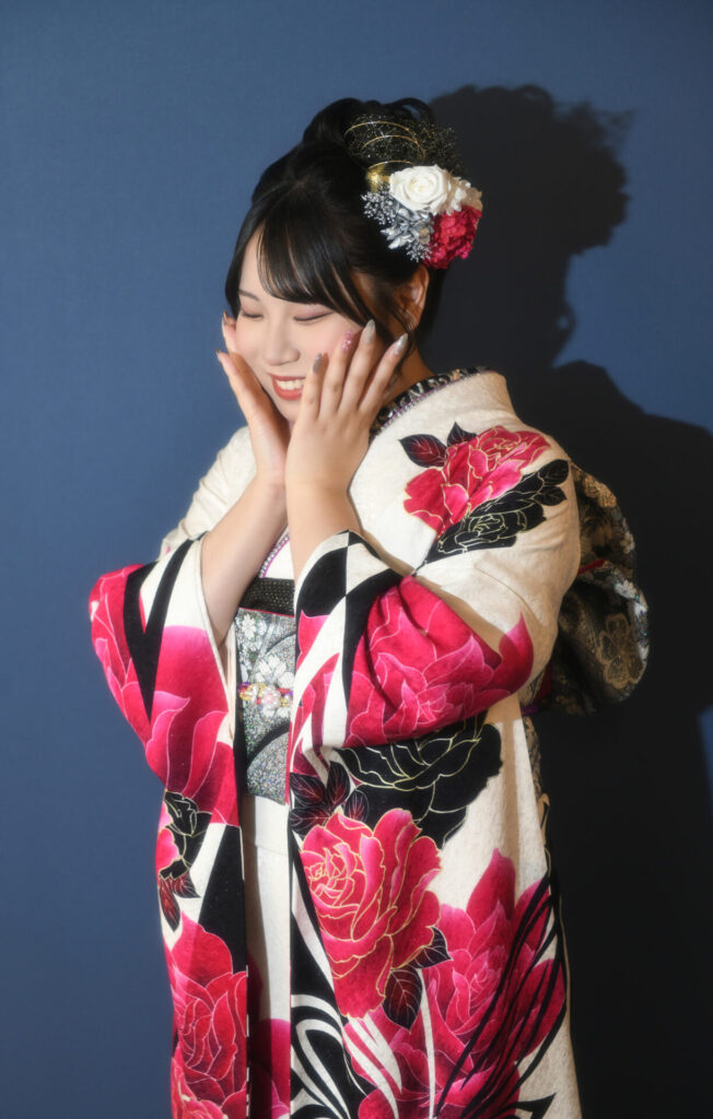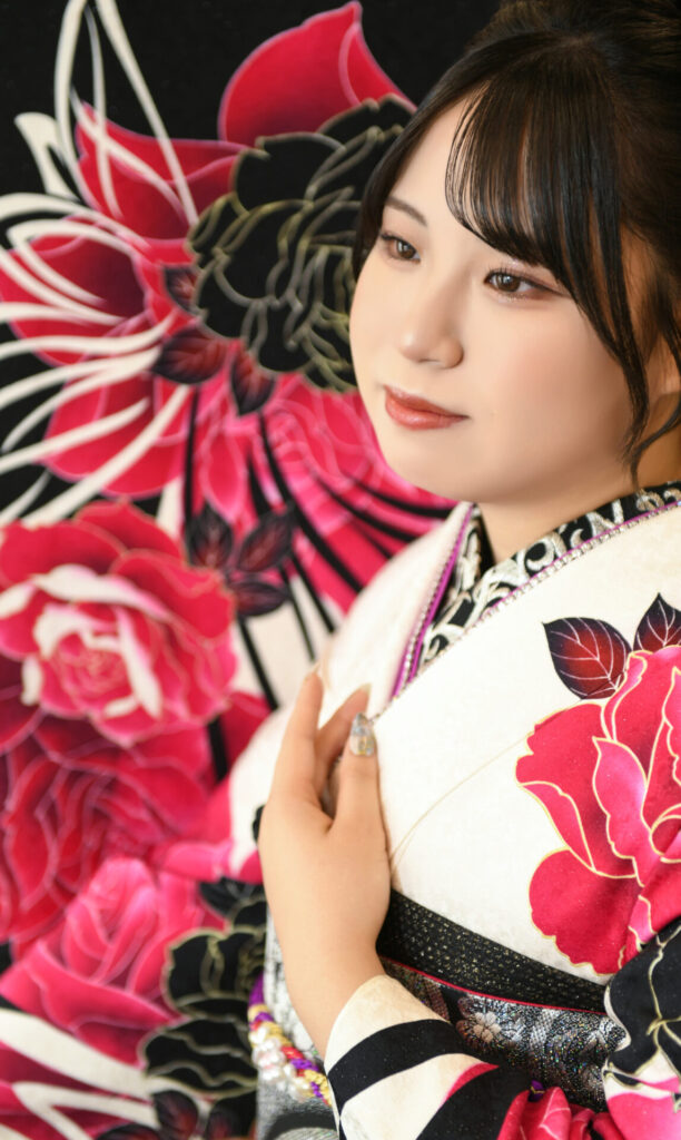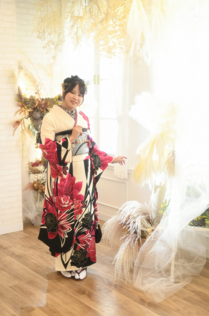 大きなお花に蝶が華やかなお袖柄を背景に1枚📸⚡