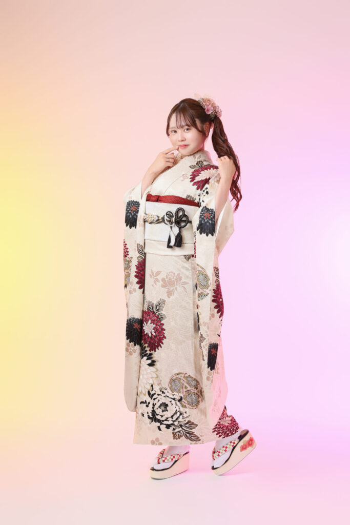 ポップな背景でのポーズもバッチリ決まっていますね!🌟