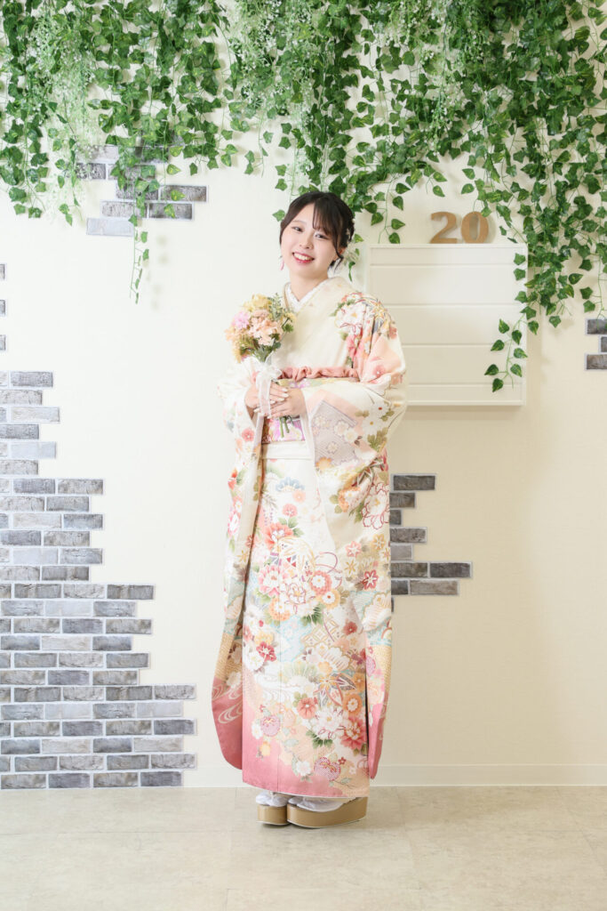 白地に淡いピンクのお振袖がとってもお似合いのお嬢様🌸💕