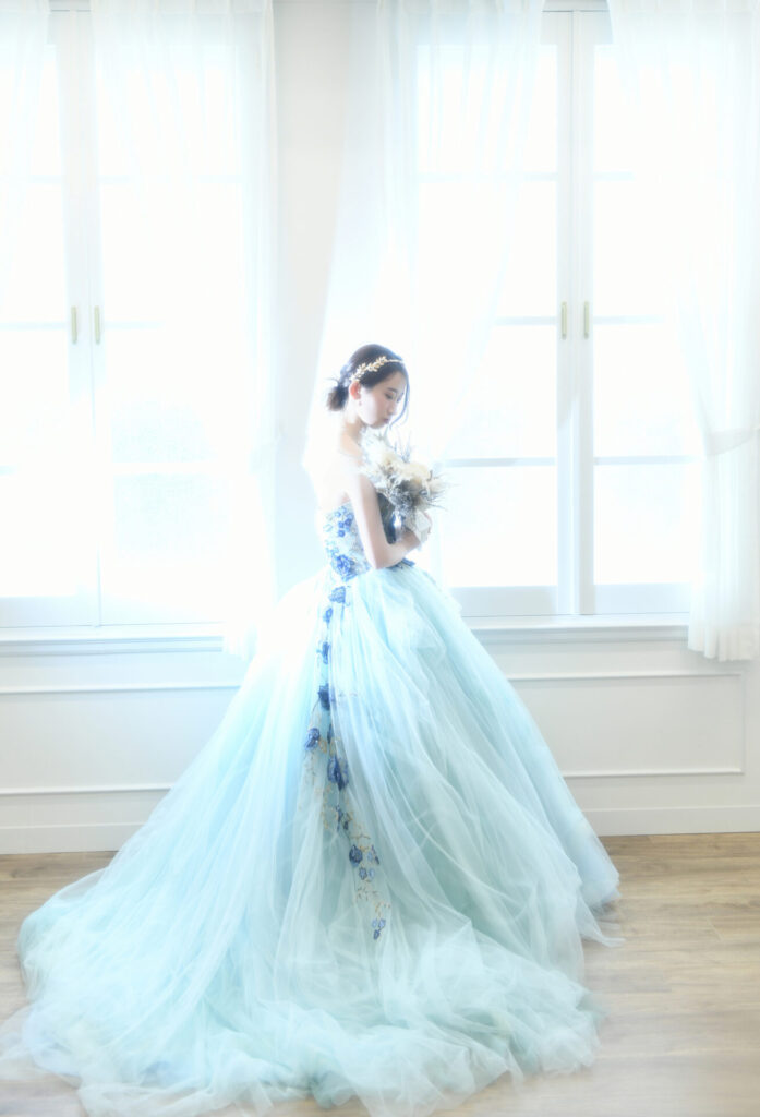 ドレスは、長いトレーンで後ろ姿がとっても綺麗な一着✨