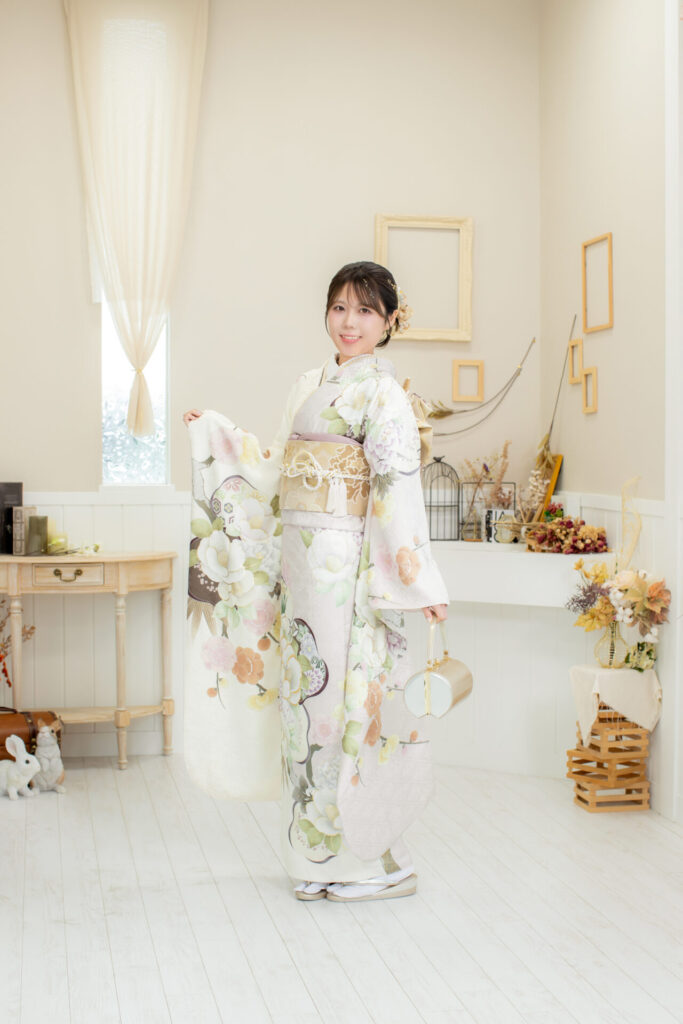 白地とピンク地にお花がたくさん入ったお振袖を、可愛く着こなしてくださいました💖