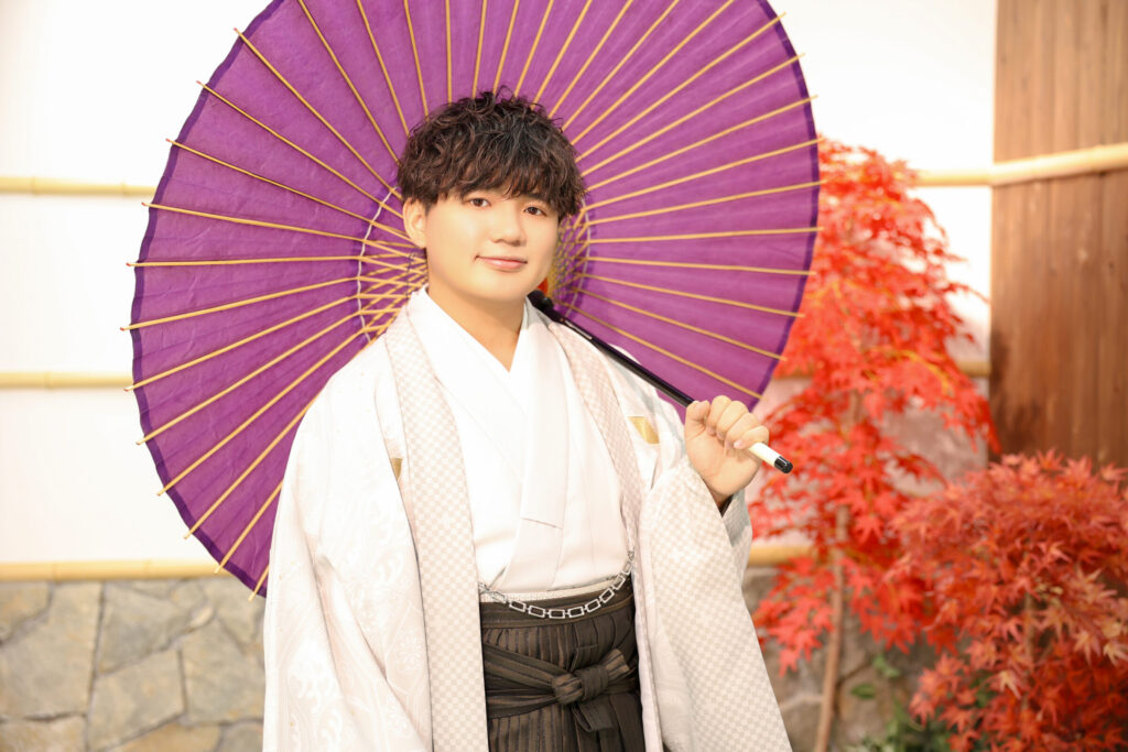 スーツに着替えてお着物とは違う雰囲気で撮影です😊