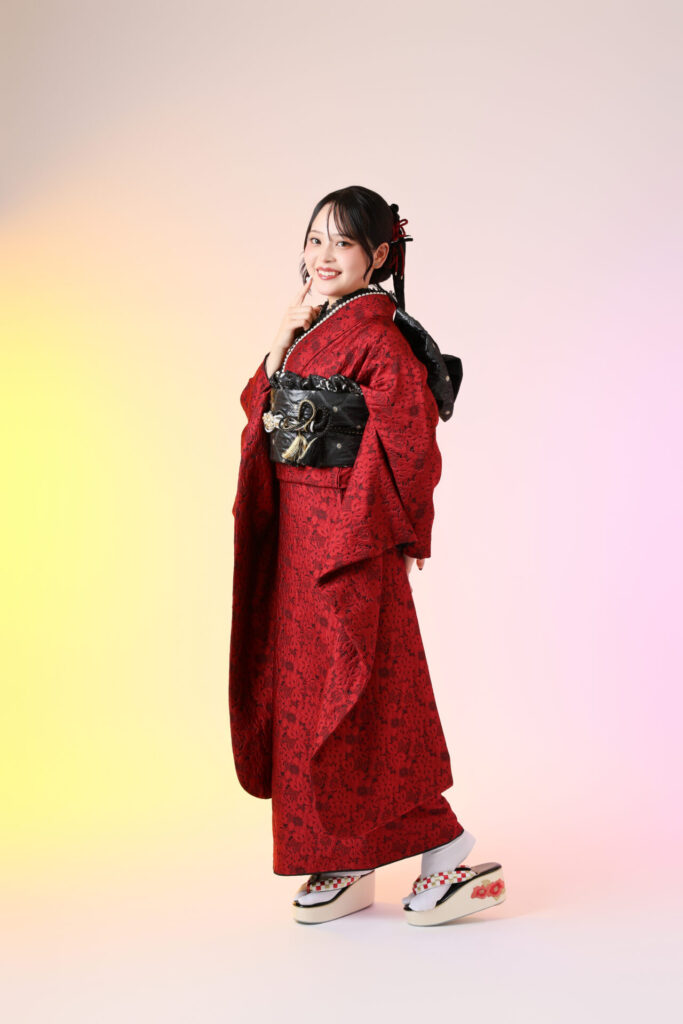 成人式といえば赤のイメージですが同じ赤でも少し個性的で当日も目立つこと間違いなし!✨