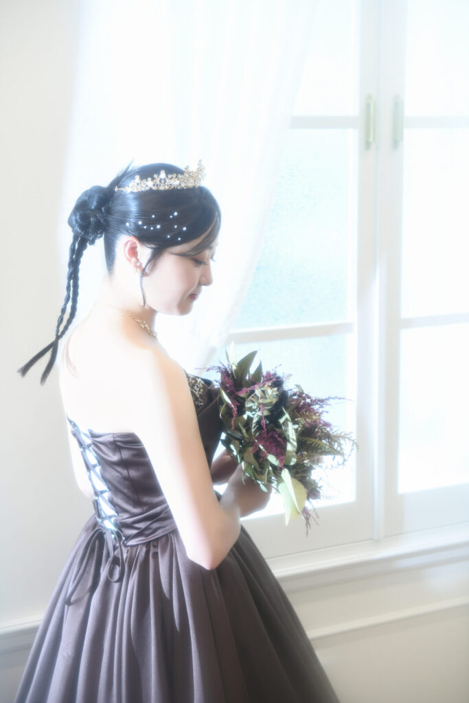 振袖ならではの華やかさと、ドレスでの落ち着いた美しさ。