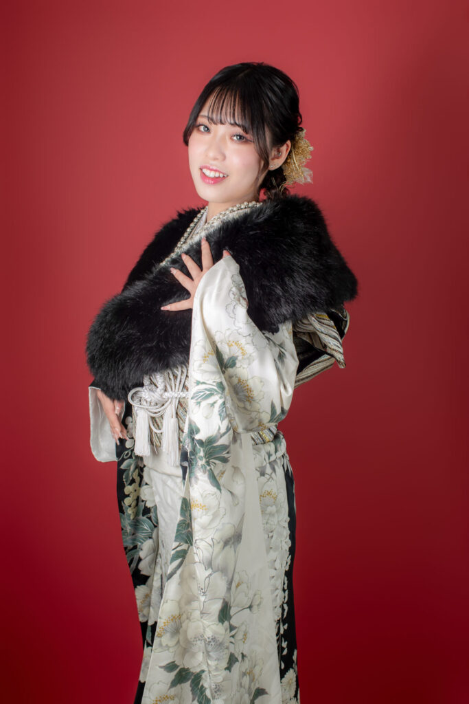 白地と黒地が半々になっているお振袖を綺麗に着こなしてくださいました😊