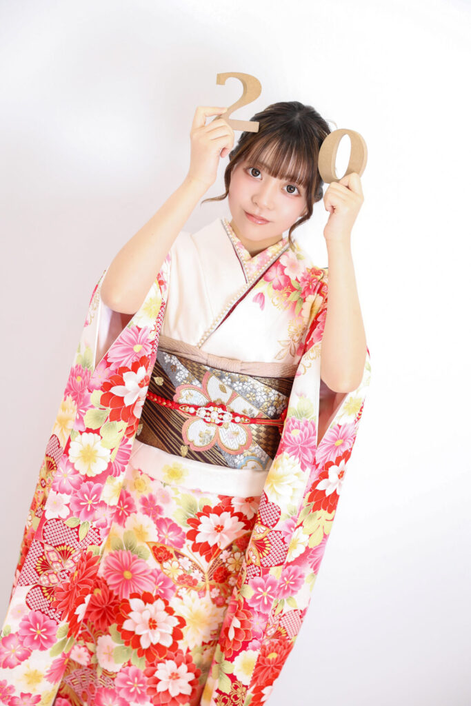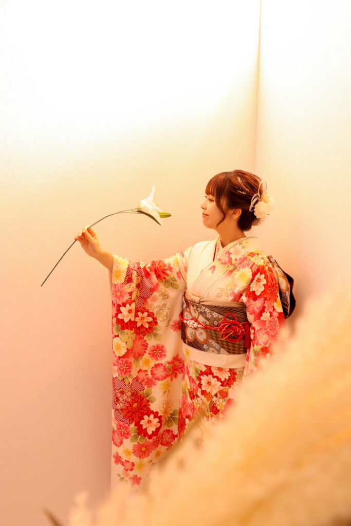 衿元と帯まわりに赤を入れることで、上品な可愛らしさがプラスされますね♥