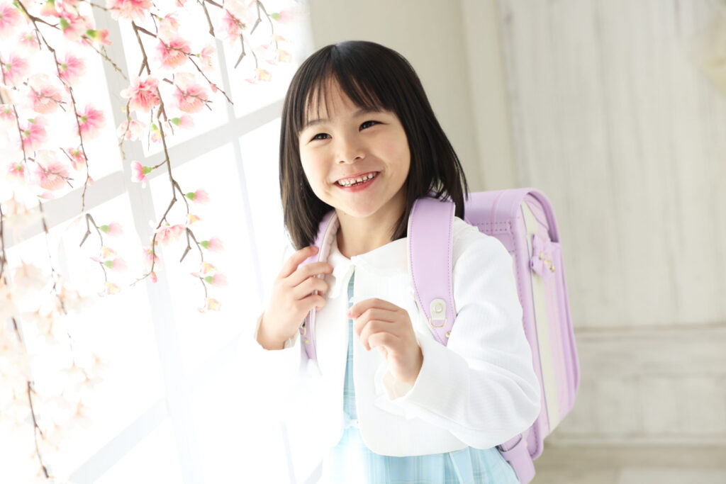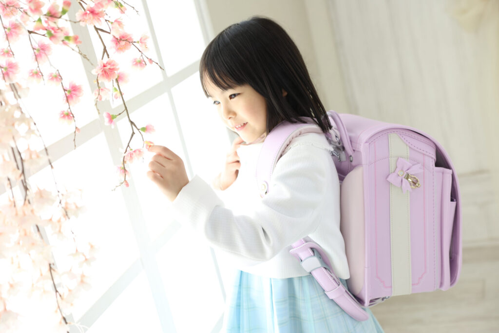 大きなランドセルをしょって