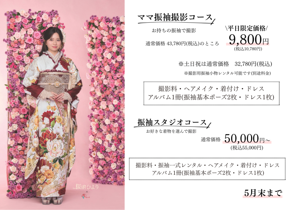 ママ振袖撮影コース 通常価格43,780円(税込)のところ