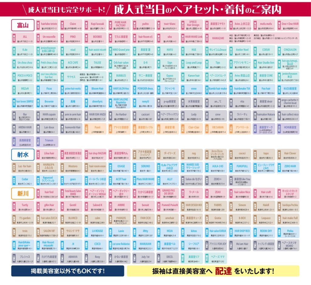 成人式当日のお支度場所(美容室)も